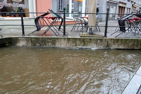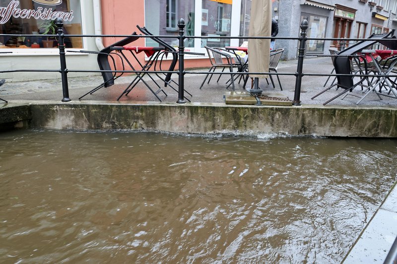 Bäche im Stadtgebiet sind am Hochwasser-Wochenende teilweise über die Ufer getreten. Das Bachbett des Stadtbachs war am Samstag maximal gefüllt, ein Überfließen konnte in der Innenstadt aber verhindert werden. Der städtische Bauhof schöpfte alle technischen Möglichkeiten aus, um über Pumpwerke und eine Regulierung so genannter „Fallen“ die Ableitung von Wassermengen aus der Innenstadt zu steuern. Auch wurden Kamm-Gitter entfernt, die sonst Schwemmgut zurückhalten, um den Wasserdurchfluss zu optimieren. Am Sonntag waren die Pegelstände an Stadtbach, Haienbach, Buxach und anderen Bächen wieder rückläufig.