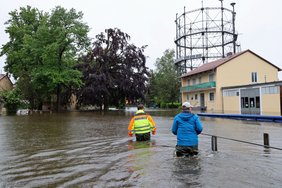 Wasser in Kellern und Erdgeschossen von Privathäusern und Unternehmen, überflutete Straßen, Wiesen und Felder, übervolle Bäche – am Wochenende hatte die Hochwasserlage in Bayern auch Memmingen fest im Griff. Über 250 Einsatzkräfte der Freiwilligen Feuerwehr Memmingen und aller Stadtteilfeuerwehren, des Technischen Hilfswerks Memmingen-Unterallgäu (THW), der Polizei, des städtischen Bauhofs und mehrerer Dienststellen der Stadtverwaltung waren rund um die Uhr aktiv, um zu helfen, die Lage zu bewältigen und Schlimmeres zu verhindern. „Durch ein schnelles, effektives und eingespieltes Zusammenwirken aller Kräfte ist es uns gelungen, die Lage rechtzeitig zu stabilisieren“, erklärt Oberbürgermeister Jan Rothenbacher. „Wir haben ein großartiges Krisenteam aus Feuerwehr, Polizei, THW, Hilfs- und Rettungsdiensten und Stadtverwaltung und ich bin jedem und jeder Einzelnen sehr dankbar für den kräftezehrenden Einsatz. Danken möchte ich auch unseren Hilfs- und Rettungsdiensten, die in besonders betroffenen Gebieten im Unterallgäu und in anderen Landkreisen im Einsatz waren.“