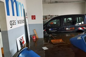 Auf dem Werksgelände der Stadtwerke Memmingen Stand das Wasser im Hof und im Erdgeschoss der Gebäude hüfthoch. Die Keller waren bis zur Decke vollgelaufen. Um die Wassermassen aus dem Gebiet Gaswerkstraße/ Freudenthalstraße möglichst schnell abzuleiten, kam am Samstagabend (1.6.) zur Unterstützung eine Gruppe „Wasserschaden/ Pumpen“ des THW Rottenburg/Neckar mit zwölf Einsatzkräften und Pumpen mit einer Gesamtleistung von 20.000 Litern/ Minute. „Die Schäden an Gebäuden, Büros und Lager sind enorm. Wir haben mit den Aufräumarbeiten begonnen, aber es ist noch sehr viel zu tun“, erklärt Marcus Geske, Leiter der Stadtwerke Memmingen.