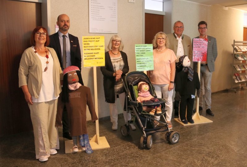 In der Ausstellung weisen 12 Puppen – in Anlehnung an die Bauernartikel aus dem Jahre 1525 – auf die Rechte von Kindern hin. Zum Beispiel auf das Recht auf Bildung oder auf das Recht auf Schutz vor Gewalt und Diskriminierung. Oberbürgermeister Manfred Schilder machte sich vor Ort ein Bild von der Ausstellung: „Kinderrechte sind für unsere ganze Gesellschaft, aber gerade auch für unser städtisches Jugendamt stets ein wichtiges Thema. Daher freue ich mich, dass wir die Kinderrechte-Puppen in unseren Räumen ausstellen dürfen.“ Gaby Land, Vorsitzende des Kinderschutzbundes Kreisverband Memmingen-Unterallgäu, ergänzt: „Kinderrechte sind Menschenrechte! Und der Kinderschutzbund setzt sich in Memmingen durch verschiedene Aktionen und Aktivitäten für die Rechte junger Menschen ein.“ Die Ausstellung knüpfe nahtlos an das vom Kinderschutzbund ins Leben gerufene Memminger Kinderparlament an, dieses vermittle die Teilhabe der Kinder an Entscheidungen in der Stadtgesellschaft, so Michael Wagner, Leiter des Amts für Jugend und Familie.