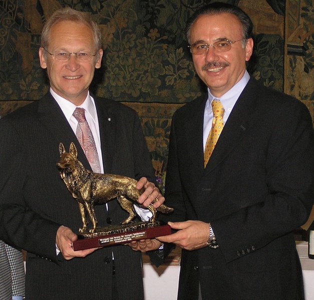 Einen Deutschen Schäferhund bekam Oberbürgermeister Dr. Ivo Holzinger (links) vom Präsidenten des Vereins für Deutsche Schäferhunde, Wolfgang Henke, geschenkt. Foto: Pressestelle