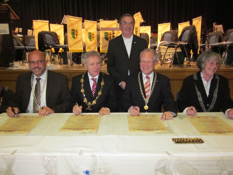 Die Gäste aus den Partnerstädten erwartete ein abwechslungsreicher und beeindruckender Ablauf der Festtage. Höhepunkt des eindrucksvollen Programms war neben der Ausstellung: „MfS und Schule – jugendliche im Fokus der Stasi“ die Festveranstaltung zum 20. Jahrestag der deutsch-deutschen Städtepartnerschaften im Kloster St. Marien zu Helfta. Eisleben unterhält neben der Maustadt weitere partnerschaftliche Beziehungen zu den deutschen Städten Herne in Nordrhein-Westfalen und Weinheim in Baden-Württemberg sowie zu Raismes in Frankreich, die dem Festakt auch mit großen Delegationen beiwohnten. Als Dokumentation der guten und engen Beziehungen zwischen den Partnerstädten unterzeichneten die Stadtoberhäupter aus Memmingen, Herne und Weinheim die „Vereinbarung über die weitere Gestaltung der städtepartnerschaftlichen Beziehungen“. Mit ihren Unterschriften bekräftigen sie den gemeinsamen Willen, diese Vereinbarung, gemäß den konkreten und sich stets entwickelnden Anforderungen und Möglichkeiten weiterhin mit Leben zu erfüllen und entsprechende Aktivitäten auch künftig zu fördern.