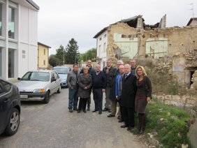 Die Grüße der Region Abruzzen (mit einem deutschen Bundesland vergleichbar) überbrachte deren Präsident Dott. Gianni Chiodi, ehemaliger Oberbürgermeister von Teramo und erinnerte an das schwere Erdbeben, das die Region vor gut zwei Jahren heimgesucht hat. Er dankte dabei der Bundesrepublik Deutschland für die Hilfe und erinnerte an den Besuch der Bundeskanzlerin im zerstörten Onna, einem kleinen Stadtteil von L’Aquila. Deshalb besuchte die Memminger Delegation auch das Erdbebengebiet und zeigte sich berührt von den Opfern und den schweren Schäden im nur 70 km von Teramo entfernten L’Aquila, der Hauptstadt der Abruzzen. Im angrenzenden, völlig zerstörten Onna wurden zwar mittlerweile mit deutscher Hilfe zahlreiche, oft provisorische Häuser neu errichtet. Es wird aber noch viele Jahre dauern, bis insbesondere die Schäden an historischen Bauten beseitigt sein werden.