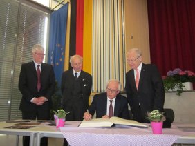 Anlässlich des 25-jährigen Schulpartnerschafts-Jubiläums kam der ungarische Generalkonsul Tamás Mydlo zum Festakt in die Aula des Vöhlin-Gymnasiums. Im Beisein von zahlreichen Schülerinnen, Schülern und Ehrengästen trug sich Mydlo zusammen mit Oberbürgermeister Dr. Ivo Holzinger, dem Schulleiter Burkhard Arnold und Lajos Oszlári, dem Vorsitzenden der Europa Union, Kreisverband Memmingen, in das Goldene Buch der Stadt Memmingen ein.