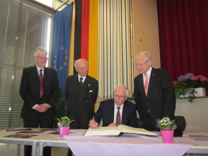 Oberbürgermeister Dr. Holzinger beglückwünschte die Schule im Rahmen seiner Laudatio zu ihrem Jubiläum. Das Stadtoberhaupt betonte dabei besonders, die engagierte Europaarbeit des Vöhlin-Gymnasiums. „Die Jugendaustauschprogramme stellen einen wichtigen Baustein für den Frieden in Europa dar“, so Holzinger.