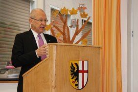 Oberbürgermeister Dr. Ivo Holzinger freute sich, zur Feierstunde "40 Jahre Schulkindergarten in Memmingen" mit Bürgermeisterin Margareta Böckh, Grundschulreferent Edmund Güttler, Sozialreferatsleiter Manfred Mäuerle, den Leiterinnen und Leitern der Memminger Kindergärten und Grundschulen sowie Medienvertretern zahlreiche Gäste im Schulkindergarten Am Kempter Tor begrüßen zu dürfen. Das Jubiläum war Anlass für einen Rückblick auf die bewegte Vergangenheit des Schulkindergartens, der heute im Zollergraben und Am Kempter Tor zu finden ist.