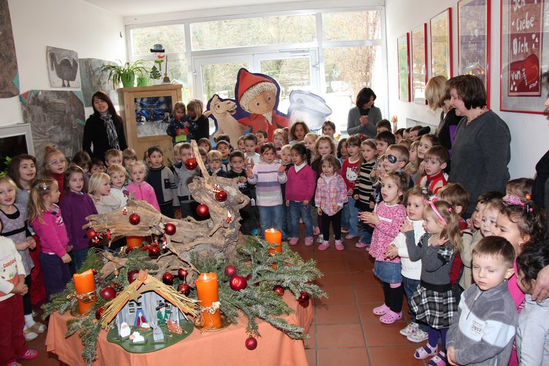 Zehn Gruppen hätten an dem Wettbewerb teilgenommen und dabei versucht, die meisten Teilnehmer zu stellen, berichtet Spitzhüttl. Mit sechshundert Teilnehmern sei das CVJM Woringen als Zweitplatzierter knapp am Sieg vorbeigeschrammt. Umso größer die Freude über den Gewinn am Wartburgweg im Memminger Westen: Vorweihnachtliche Stimmung im Eingangsbereich des Kindergartens. Alle Kindergartengruppen sind versammelt und begrüßen Oberbürgermeister und Vertreter des Kinos und der Stadtverwaltung mit einem Ständchen „In der Weihnachtsbäckerei“. Dr. Holzinger zeigt sich erfreut über den Gewinn und den dabei gezeigten Zusammenhalt der Einrichtungen im Memminger Westen. Von einem „Zeichen der Solidarität“ spricht auch Barbara Schelle, Leiterin des Kindergartens. Sie strahlt, ermöglicht der Gewinn ihr nun, neue Spielgeräte anzuschaffen. Auch Hortleiterin Carolin Decker hat schon einige Ideen für die Verwendung der Zuwendung. Und das Splash-Team um Elke Werner will das Geld für Spiele und erlebnispädagogische Maßnahmen einsetzen. „Wir werden damit wahrscheinlich Snowboardkurse anbieten, was sonst nicht möglich gewesen wäre“, berichtet sie. Erfreut über die Begeisterung, die der Gewinn ausgelöst hat, verspricht Kinoleiter Oliver Kühne sogleich: „Wir machen den Wettbewerb in nächsten Jahr noch mal“. Die drei sozialen Einrichtungen am Wartburgweg werden sicherlich wieder mit dabei sein. Nicht nur des Geldes wegen: „Das war für die Kinder auch ein großes Erlebnis“, berichtet Kindergartenleiterin Schelle.