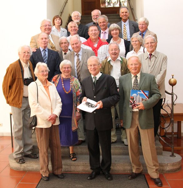 Oberbürgermeister Dr. Holzinger empfing jetzt in der Rathaushalle ehemalige Schülerinnen und Schüler, die vor 50 Jahren am Humanistischem Gymnasium an der Buxacher Straße ihr Abitur ablegten. Auch drei der damaligen Lehrer waren dabei. Oberbürgermeister Dr. Holzinger berichtete, dass die Stadt Memmingen in den letzten Jahren 50 Millionen Euro für Bildung ausgegeben habe und wies dabei auf die hohen Kosten der heutigen technischen Ausstattung der Klassenräume hin. Organisator Gunter Bernert, wie er selbst sagte, „seit über 50 Jahren Klassensprecher“, erinnerte daran, dass der damaligen Unterricht mit Kreide und Tafel und ohne moderne Technik auch nicht schlechter gewesen sei. Die ehemaligen Schülerinnen und Schüler haben noch regen Kontakt und treffen sich jährlich. Alle fünf Jahre wird groß gefeiert. Im Anschluss an den Empfang im Rathaus ging es weiter zu Kuchen und Kaffee sowie zum Abendessen in die Brasserie Breckels.