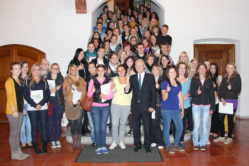 87 Jugendliche beginnen diesen Herbst in elf Berufen eine Ausbildung bei der Stadt Memmingen. Am "Bayerischen Tag der Ausbildung 2012" begrüßte Oberbürgermeister Dr. Ivo Holzinger die neuen Auszubildenden im Rathaus und wünschte ihnen einen erfolgreichen Start ins Berufsleben. Insgesamt beschäftigt die Stadt Memmingen derzeit 192 Auszubildende.