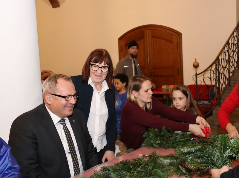 Oberbürgermeister Manfred Schilder eröffnete die Aktion des Kinderschutzbundes mit einer kurzen Ansprache. „Das Adventskranzbinden ist über die Jahre zu einer schönen Tradition geworden“, freute sich Schilder. Er bedankte sich bei allen Anwesenden, insbesondere bei den Helferinnen und Helfern vom Kinderschutzbund und wünschte eine schöne und besinnliche Adventszeit.