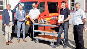 Die kurzfristige Beschaffung des neuen Systems wurde durch eine Spende der Firmen Wilhelm Baumann GmbH und Baumann GmbH, Teil der MedeleSchäfer Gruppe, in Memmingen ermöglicht. Frank Greiner, Vorsitzender des Feuerwehrvereins, dankte den Firmen für ihr großes Engagement für das Ehrenamt. „Wir sind in Memmingen und Umgebung in der glücklichen Situation, dass wir hier Arbeitgeber haben, die stets verständnisvoll sind, wenn es darum geht unsere Feuerwehrmitglieder zu Einsätzen freizustellen und uns auch regelmäßig durch Spenden unterstützen. Allerdings kommt es nicht allzu oft vor, dass wir von einem Unternehmen mit einer Spende in dieser Höhe bedacht werden“, betonte Greiner. Die Feuerwehr Memmingen möchte solch überdurchschnittlich engagierte Unternehmen künftig entsprechend würdigen. Stadtbrandrat Niggl und Vereinsvorsitzender Greiner überreichten den anwesenden Vertretern der Firmen, Johannes Medele und Sebastian Baumann, daher als ersten Unternehmen eine neu geschaffene Anerkennung in Form einer Urkunde und Plakette. Diese weisen darauf hin, dass die Unternehmen „Partner und Förderer der Freiwilligen Feuerwehr Memmingen“ sind.
