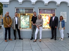 Bereits zum 11. Mal findet die Aktion „Kunst im Geschäft“, des Memminger Stadtmarketings statt. Vom 27. September bis zum 18. Oktober 2021 sind die Werke von 36 Künstlerinnen und Künstlern zu sehen. Wie auch in den Jahren zuvor, sind diese in den Schaufenstern und Innenräumen von Geschäften, Dienstleistern und Firmen im Stadtgebiet verteilt. „Das ist eine wunderbare Aktion, die in der Bevölkerung immer großen Anklang findet. Ich danke den Verantwortlichen für ihren Einsatz, und hoffe, dass trotz Schnapszahl alles gut klappt“, sagte Oberbürgermeister Manfred Schilder bei der Begrüßung einiger Akteure, die sich zum Ausstellungsstart zum künstlerischen Stadtspaziergang getroffen hatten. Alexandra Hartge, Leiterin des Stadtmarketing, freut sich, dass die Lust an „Kunst im Geschäft“ weiterhin ungebrochen ist: „Es ist eine etablierte Aktion, die für die Unternehmen, die Ausstellenden, die Passanten und die Werke einen absoluten Mehrwert bringt.“