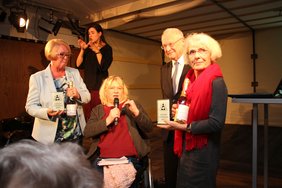 Nach der offiziellen Präsentation des neue erstellten Aktionsplanes verlieh die Vorsitzende des Behindertenbeirates, Verena Gotzes, zusammen mit Oberbürgermeister Dr. Ivo Holzinger den Pokal „An Behinderte gedacht“ an zwei ehrenamtlich sehr engagierte Damen: Brunhilde Engstle und Ingrid Willner-Sambs. Beide sind Mitglieder im Behindertenbeirat und machen sich seit langem um das Thema Inklusion verdient.