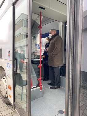 Die Sonderimpfaktion an zwei Nachmittagen an der Theodor-Heuss-Schule wurde gut angenommen. Bruno Ollech, stellvertretender Bezirksgeschäftsführer des Malteser Hilfsdienstes, zeigte sich zufrieden: „Wir haben am ersten Tag 90 und am zweiten Tag 52 Impfungen verabreichen können.“ Oberbürgermeister Manfred Schilder war vor Ort, um sich zu informieren und allen Beteiligten seinen Dank auszusprechen. „Dieses Engagement ist wirklich hervorragend“, lobte er Schulleiterin Angela Heuß-Hornfeck und Hausmeister Daniel Dorn. Die Aktion richtete sich vor allem an ältere Menschen, die im Impfbus geimpft wurden, aber die Anmelde- und Wartezeit in der Aula der Theodor-Heuss-Schule zubringen konnten. Zusätzlich wurden die Wartenden von Freiwilligen des Bayerischen Roten Kreuzes mit warmen Getränken versorgt.