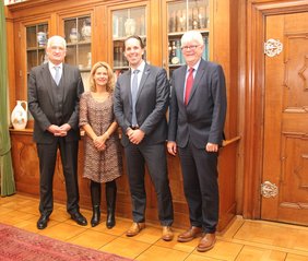 An dem Empfang im Amtszimmer nahmen auch Burkhard Arnold, Vorsitzender der Europa Union, Kreisverband Memmingen, und die Leiterin des städtischen Europabüros, Alexandra Störl, teil. Oberbürgermeister Markus Kennerknecht hieß den Kommissionsleiter herzlich in seinem Amtszimmer willkommen. Es ergab sich ein interessanter Austausch über unterschiedliche berufliche Erfahrungen bei Aufenthalten im europäischen Ausland sowie auch über die unterschiedlichen Rahmenbedingungen und Mentalitäten der jeweiligen Nationalitäten. Im Rahmen des Gesprächs sicherte der Rathauschef dem Leiter der Kommission die nachhaltige Unterstützung der Stadt zu. „Ich unterstütze die Arbeit des Europabüros weiterhin sehr gerne, auch mir liegt Europa am Herzen!, so Kennerknecht.