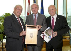 Oberbürgermeister Dr. Ivo Holzinger und Staatsminister a.D. Josef Miller waren in Niederösterreich zu Besuch. Landeshauptmann Dr. Erwin Pröll freute sich, die Gäste aus Memmingen in St. Pölten begrüßen zu dürfen. Gemeinsam mit dem Rektor der Donau-Universität Krems, Mag. Friedrich Faulhammer, wurde anschließend auf dem Campus-Gelände über die Zukunft der Universität und die weitere Entwicklung des Lehrstandorts Memmingen gesprochen.