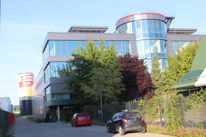 Eine Anerkennungsurkunde wurde für den Neubau des Verwaltungsgebäudes der Firma Gefro verliehen. In der Laudatio hieß es, dass der bestehende Firmensitz inmitten des Gewerbegebietes sehr ansprechend ist und das Bild der Rudolf-Diesel-Straße deutlich aufwertet. Die Glasfassade sei harmonisch und gut strukturiert. Der halbrunde Eingangsbereich und das Treppenhaus lockern die Front auf und verweisen darauf, womit hier Geld verdient wird: Suppendosen.