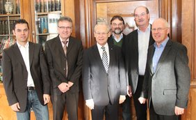 Mit Wirkung zum 1. Januar kommenden Jahres bestellt Oberbürgermeister Dr. Ivo Holzinger nun den Leiter des Stadtplanungs- und Vermessungsamtes der Stadt Memmingen, Ulrich Wagner, zum Leiter des Referates 5 der Stadtverwaltung. Mit der stellvertretenden Referatsleitung beauftragt der Verwaltungschef Tiefbauamtsleiter Ingo Mnich. Wagner ist gebürtiger Stuttgarter und kam nach langjähriger beruflicher Station in Heidelberg 1994 zur Stadt Memmingen. Nach dem Ausscheiden von Baureferatsleiter Aloys Hinske zum Mai diesen Jahres hatte Wagner bereits die kommissarische Referatsleitung übernommen. Mnich stammt aus dem Saarland, trat aber bereits 1973 in städtische Dienste. Seit 1984 leitet er das Tiefbauamt. Das Referat 5, Bauwesen, umfasst alle Ämter des Baubereichs. Im Bild Oberbürgermeister Dr. Ivo Holzinger mit Wagner (2.v.r) und Mnich (rechts) und den zum Referat gehörenden Amtsleitern Fabian Damm (links) vom Hochbau und Bauordnungsamt, Franz Weigele (2.v.l.) vom Bauverwaltungsamt sowie Rudolf Schnug (3.v.r.) vom Garten- und Friedhofsamt.
