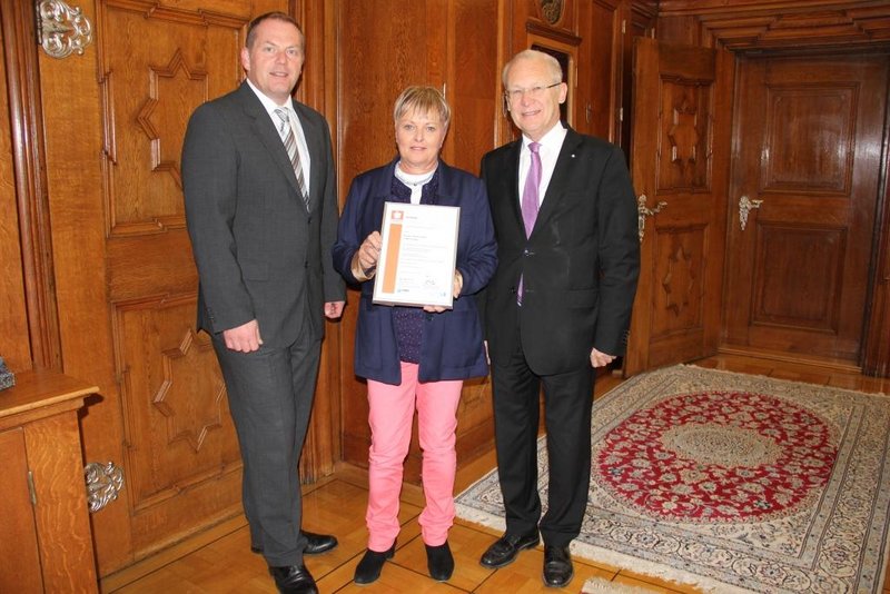 Das begehrte Zertifikat für das Qualitätszeichen „Generationenfreundliches Einkaufen“ wurde Inhaberin Elisabeth Köhler-Leichtle durch Oberbürgermeister Dr. Ivo Holzinger gemeinsam mit Andreas Gärtner vom Handelsverband Bayern und Alexandra Störl, Leiterin von Perspektive Memmingen, überreicht.