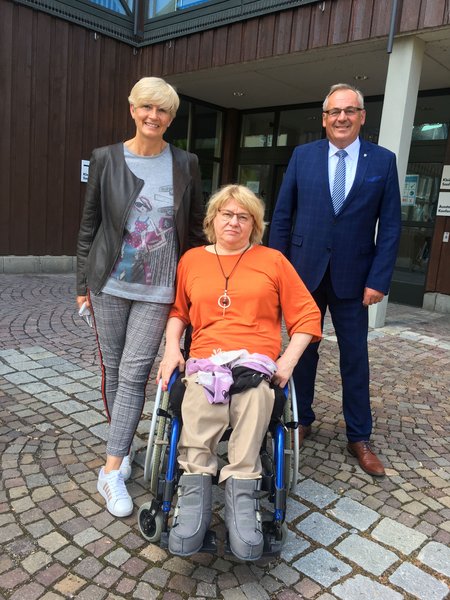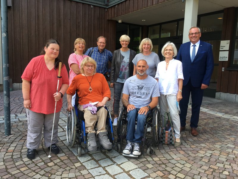 Regina Sproll, Offene Behindertenarbeit Regens Wagner und Mitglied im Behindertenbeirat berichtet über Aktionen aus den letzten Jahren, wie beispielsweise den europäischen Protesttag zur Gleichstellung von Menschen mit Behinderung, aber auch das Straßenfest, das mit Unterstützung des Landestheaters jährlich auf dem Theaterplatz stattfinden kann. Auch abgeschlossene Anträge, wie der installierte Lift im Freibad und noch offene Anträge, wie die neue Beschilderung der Verwaltungsgebäude kamen zur Sprache. Die Verwaltung arbeitet aktuell daran, die Türbeschilderung in den Gebäuden übersichtlicher zu gestalten indem die Schriftgrößen verändert und die Schilder farblich aufgewertet werden. Erfreuliche Nachrichten brachte OB Schilder mit in die Runde. Der Aufzug, der das Rathaus mit dem Welfenhaus verbindet und einen barrierefreien Zugang gewährleistet, wird künftig mit einer Gegensprechanlage versehen. Aktuell ist dieser Aufzug abgeschlossen, um den Zugang zu den beiden Gebäuden mittels Empfang zu überblicken. Durch die neue Anlage können sich Personen, etwa mit Kinderwagen oder Rollstuhl bemerkbar machen und nach Rücksprache in die Gebäude gelangen.