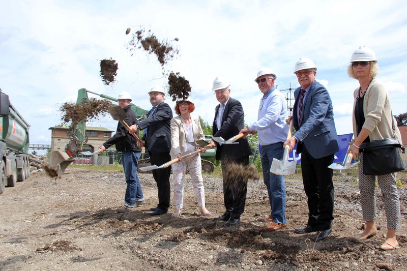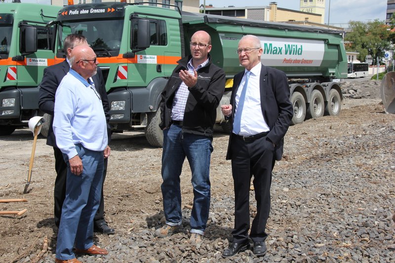 „Der Baubeginn hat sich etwas verzögert, weil es einige Schwierigkeiten gegeben hat“, erklärte Architekt Manfred Ecks. So habe sich die Verlegung einer elektrischen Leitung durch die Deutsche Bahn etwas länger als erwartet hingezogen. „Unter dem Grundstück verläuft auch ein Eisenbahnbach in einem gemauerten Gewölbe, wohl um das Jahr 1850 entstanden. Den Bachlauf mussten wir in alten Plänen suchen.“ Zudem sei der Baugrund durch Chloride, also Salze, belastet. „Um möglichst wenig Aushub entsorgen zu müssen, wendet die Firma Goldbeck ein Rüttelstoppverfahren an. Stahlrohre werden in den Grund gerüttelt, und der vorhandene Boden weicht aus“, erklärte Ecks. Wegen der Bombardierung des Bahnhofsgeländes im April 1945 müssten allerdings diese Stellen zuvor auf Blindgänger sondiert werden.