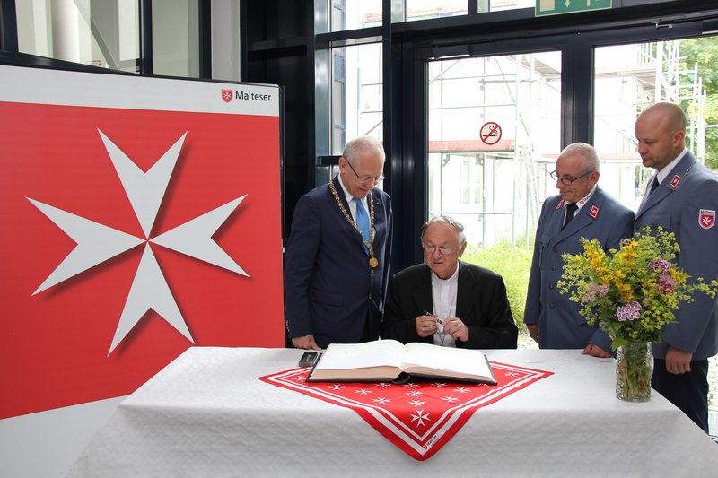 Zuvor hatte Geschäftsführer Bruno Ollech seine Malteser und Ehrengäste aus den Bereichen Kirche, Polizei, Feuerwehren, Technischem Hilfswerk und den befreundeten Hilfsorganisationen begrüßt. Mit dem Hinweis auf die am Rathaus aufgezogene Fahne mit dem achtspitzigen Malteserkreuz dankte Ollech Oberbürgermeister Dr. Holzinger für die Unterstützung: „So zeigt sich der Stellenwert, den die Stadt den Maltesern beimisst“