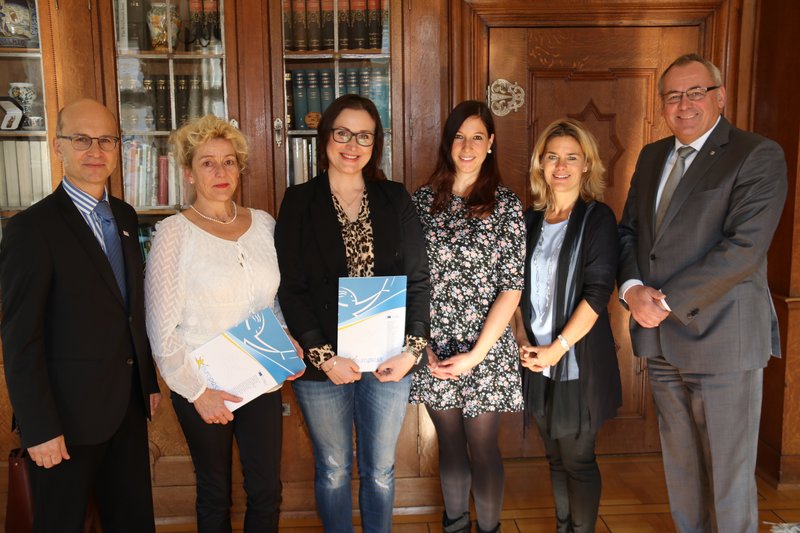 Vier Dozentinnen der Volkshochschule Memmingen haben an einer einwöchigen Sprachreise nach England teilgenommen, die durch das Erasmus-Programm der Europäischen Union gefördert worden ist. Aus den Händen von Oberbürgermeister Manfred Schilder erhielten die Lehrerinnen für Deutsch als Fremdsprache oder Alphabetisierung nun einen „Europass“, die Teilnahmebestätigung für ihre Sprachreise nach Norwich in England. Teilgenommen haben Lisa Keating-Wassermann, Claudia Bänsch, Svitlana Harder und Kathrin Merz.