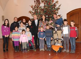 Oberbürgermeister Dr. Ivo Holzinger hieß zwei Memminger Familien im Sitzungssaal des Rathauses herzlich willkommen. Diese hatten in den vergangenen Wochen ihr jeweils siebentes Kind bekommen. Für Ahmed Issa und Jaron Dominik Graser aus Memmingen hat der Bundespräsident Joachim Gauck daher die Ehrenpatenschaft übernommen.