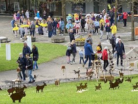Am Kunsthandwerkermarkt von der Maximiliansstraße über den Schweizerberg bis zum Westertorplatz gab es viel Kreatives für Haus und Garten zu entdecken. Filigran gefertigte Blumenbroschen aus Filz, Schlüsselanhänger aus kleinen Kieselsteinen, bunte Keramikkugeln fürs Blumenbeet und vieles mehr wurde an den Ständen geboten. Sträuße und Gestecke mit Blumen in allen Farben waren rechtzeitig für den bevorstehenden Muttertag zu haben.