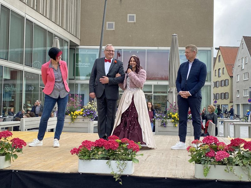 Memmingen blüht wieder - nach zwei Jahren pandemiebedingter Pause lockten das abwechslungsreiche Programm und die kreativen und blumenprächtigen Angebote von „Memmingen blüht“ zahlreiche Besucherinnen und Besucher in die Memminger Innenstadt. „Mögen wir alle ein schönes Fest haben“, wünschten Oberbürgermeister Manfred Schilder und Blumenkönigin Marina I. dem gut gelaunten Publikum vor der Hallhofbühne und eröffneten den großen Einkaufs- und Familientag des Stadtmarketing e.V. feierlich.