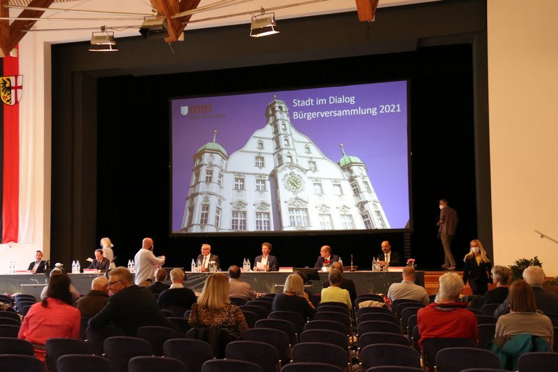 Einen bunten Strauß an Informationen zu aktuellen Themen in Memmingen erhielten rund 120 Gäste der diesjährigen Bürgerversammlung in der Stadthalle. Unter dem Motto „Stadt im Dialog“ wurden viele Fragen der Bürgerinnen und Bürger erörtert. Die Anliegen drehten sich um einzelne Straßenverkehrsthemen, um Bauprojekte oder Themen rund um den Klimaschutz.