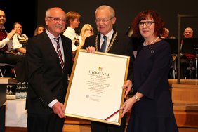 Auch ein 14-Stunden-Tag habe ihm nichts ausgemacht, beschrieb die Bürgermeisterin Holzingers Arbeitsalltag. „Er ist zur letzten Veranstaltung des Tages genauso gerne und gut gelaunt gegangen wie zur ersten.“ Die Akten auf seinem Schreibtisch habe er allerdings sofort liegen gelassen, wenn seine Enkelin ans Amtszimmer geklopft habe und den Opa besuchen wollte. Margareta Böckh dankte auch der Ehefrau des Oberbürgermeisters, Margret Holzinger. „Unser aller großer Dank geht an Sie und auch an Ihren Sohn für das Mittragen, Ermutigen, Trösten, Zuhören, Anspornen, Mitleben und Mitfreuen.“