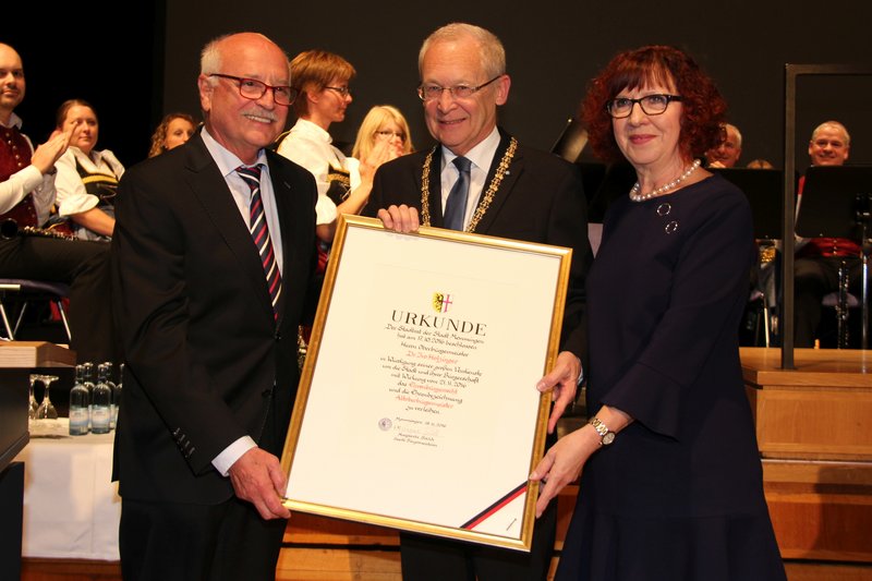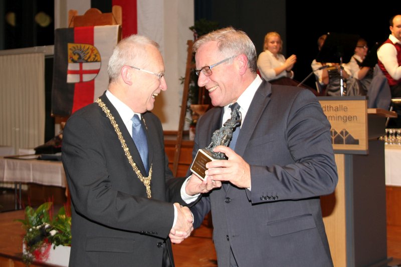 Als Vertreter der Wirtschaft sprach Wolfgang E. Schultz dem Oberbürgermeister seinen Dank für 36 gute Jahre aus. Gerhard Pfeifer, Vizepräsident der IHK Schwaben, zeichnete den Oberbürgermeister mit der Goldenen Ehrennadel mit Diamant aus für dessen Dienst an der Gemeinschaft, für seine Redlichkeit und Integrität.
