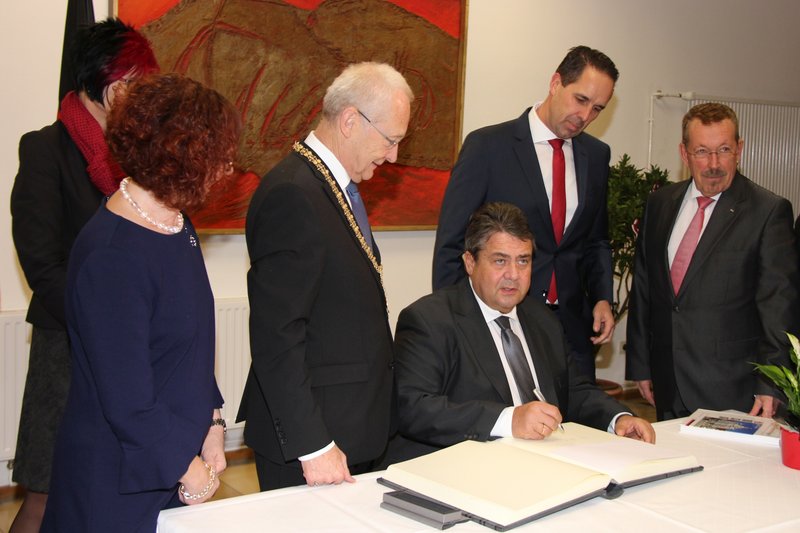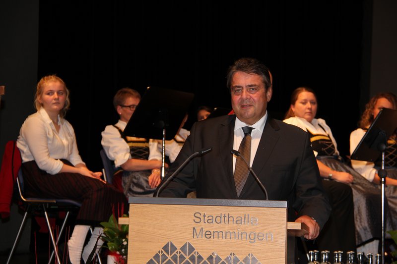 „Memmingen ist eine wachsende, lebendige und liebenswerte Stadt, in der sich die Menschen wohlfühlen auch dank deiner Politik“, sprach Gabriel dem scheidenden Oberbürgermeister zu. „Ich grüße Dich von den 440.000 SPD-Mitgliedern, du bist ein toller Kerl und wir sind froh, dass du zu uns gehörst.“ Kommunalpolitik sei das Fundament der Demokratie, betonte Gabriel. „Über alle Dinge, die uns im Alltag wichtig sind, entscheidet die Kommunalpolitik.“ Von der Verkehrsplanung über die Ansiedlung von Wirtschaftsbetrieben, den Bau von Schulen oder die Kulturförderung. Sein persönlicher Traumberuf sei eigentlich Oberbürgermeister seiner Heimatstadt Goslar zu sein, erzählte Gabriel gut gelaunt. „Jetzt muss ich möglicherweise auf die zweitbeste Wahl zurückgreifen“, erklärte er schmunzelnd in Anspielung auf seine mögliche Kanzlerkandidatur.