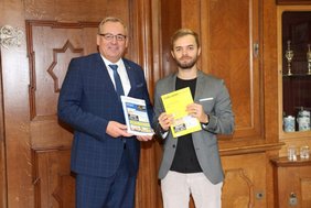 Rudolf Osterrieder von der Kunze Medien AG präsentierte Oberbürgermeister Manfred Schilder im Rathaus mit Freude die aktuelle Ausgabe "Das Örtliche für Memmingen und Umgebung" und überreichte ihm ein druckfrisches Exemplar.