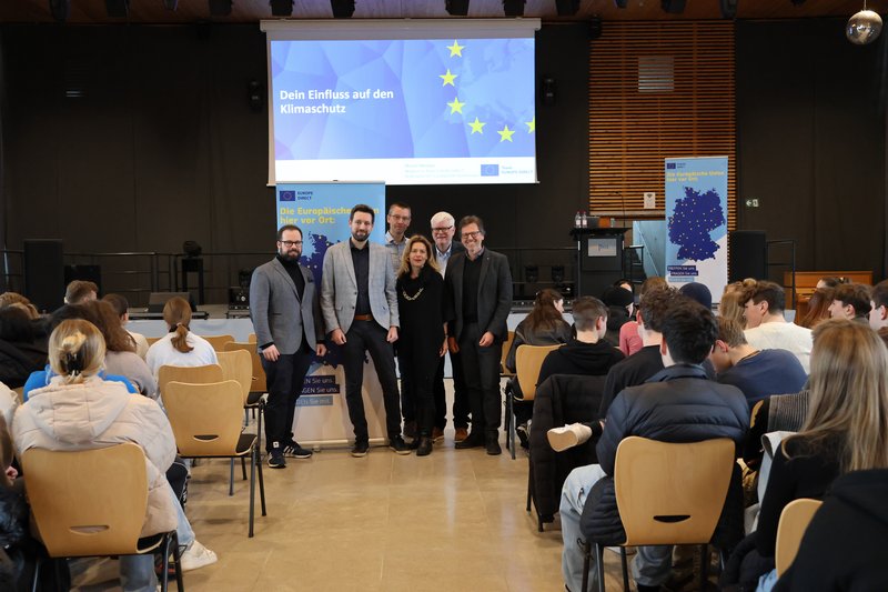 Rund 300 Schülerinnen und Schüler ab der 10. Klasse von verschiedenen Memminger Schulen nahmen an dem interaktiven EU-Vortrag „Dein Einfluss auf den Klimaschutz“ in der Aula der fos/ bos in Memmingen teil. Im Vorfeld der Europawahlen am 9. Juni 2024 zeigte Referent Martin Mödder, Mitglied im Team Europe Direct Rednerpool der Europäischen Kommission, mit seinem Vortrag auf, wie die Klimapolitik in der EU funktioniert. Organisiert wurde der Vortrag von Alexandra Hartge, Leiterin des Memminger Europabüros, in Kooperation mit der Europäischen Kommission.