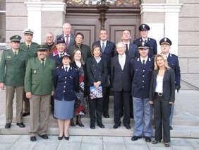 Anlässlich des jährlich stattfindenden Bürger- und Polizeiballs reiste eine große Abordnung der Polizei Teramo mit Quästorin Amalia Di Ruocco an der Spitze, vergleichbar dem Polizeipräsident in Deutschland, nach Memmingen. Die Gruppe wird begleitet von den beiden teramanischen Stadträten Giorgio D´Iganzio und Marco Tancredi, die die Grüße des Oberbürgermeisters von Teramo, Maurizo Brucchi, überbrachten.