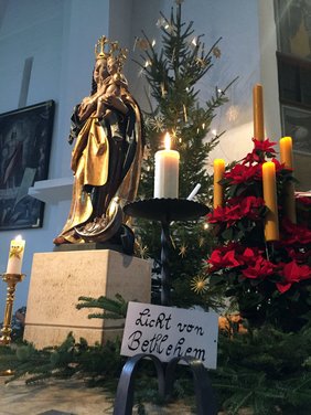 Das „Licht von Bethlehem“ kann von 21.-23. Dezember 2019 zwischen 9 und 17 Uhr bei den Maltesern (Augsburgerstraße 8) abgeholt werden. Es steht auch in allen katholischen Kirchen der Pfarreiengemeinschaft Memmingen bereit. Bitte eine Laterne mitbringen.