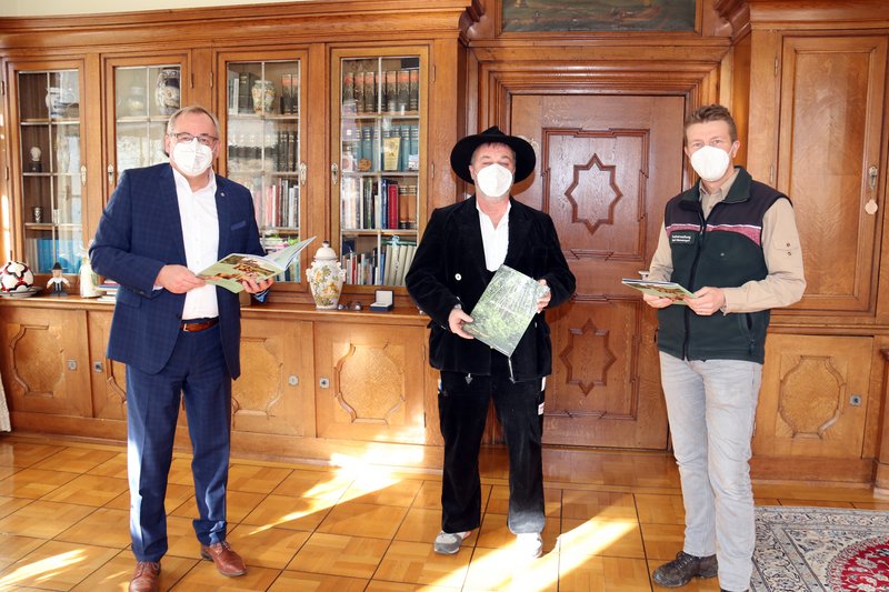 Alle 40 Sekunden wächst in Bayern so viel Holz, wie für ein Holzhaus benötigt wird – 15 Minuten spazieren gehen im Wald senkt das Stress-Empfinden, den Blutdruck und die Herzfrequenz. Diese und viele andere spannende Infos rund um das Holz und den heimischen Wald sind in einem neuen Magazin „Holz. Heimat. Zukunft.“ des Holzforums Allgäu e.V. gesammelt. Jürgen Kolb, Vorstandsmitglied im Holzforum Allgäu und Obermeister der Zimmererinnung Memmingen-Mindelheim, überreichte ein druckfrisches Exemplar an Oberbürgermeister Manfred Schilder. „Es ist eine sehr informative Broschüre, die den wichtigen regionalen Rohstoff Holz von vielen Seiten beleuchtet“, lobte der Oberbürgermeister. Auch die Stadt Memmingen ist Mitglied im Holzforum Allgäu, einem Netzwerk zahlreicher Akteure der Forst- und Holzwirtschaft.