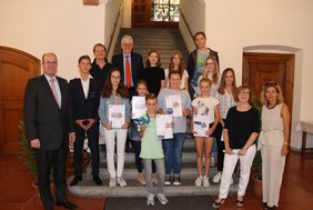 Die Bundes- und LandessiegerInnen sowie die Unterstützer und Organisatoren der Preisverleihung im Memminger Rathaus. Fotos: Gstir/Stadt Memmingen.