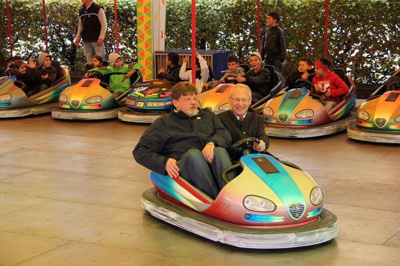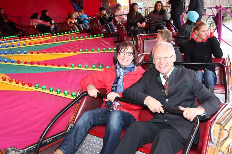 Aufgrund der schlechten Witterungslage eröffneten Oberbürgermeister Dr. Ivo Holzinger, Marktreferent Stadtrat Rolf Spitz und Schaustellervertreter August Ehrenbogen den diesjährigen Memminger Jahrmarkt im Autoscooter der Familie Staudenrausch. Doch hatte der Regen rechtzeitig aufgehört und vereinzelt kam gar die Sonne zum Vorschein. "Wir haben das gute Wetter nur an Oberbürgermeister Ude aus München verliehen", scherzte das gut gelaunte Stadtoberhaupt. Die Dankesworte des Oberbürgermeisters für die Vorbereitungen galten Marktreferent und Marktamt sowie den Schaustellern, die den Memminger Jahrmarkt zu einem "Ereignis, das weit über Memmingen hinausstrahlt" gemacht hätten. Nach den Worten des Oberbürgermeisters griff Marktreferent Spitz traditionell zur Trompete. Die Musikkapelle Amendingen umrahmte die Eröffnung musikalisch. Bei einem Rundgang testete der Oberbürgermeister mit Bürgermeisterin Margareta Böckh und zahlreichen Stadträten die Vielfalt der Fahrgeräte sowie die kulinarischen Köstlichkeiten, die noch bis 16. Oktober beim größten Innenstadtjahrmarkt Süddeutschlands genossen werden können.