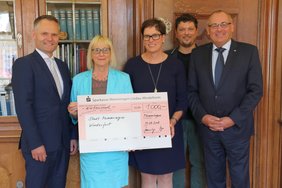 Im Rathaus übergaben die Vorsitzenden der Siebendächer Baugenossenschaft Claudia Knittel und Markus Sonntag einen Scheck über 1000 Euro an die „Kinderfestmutter“ Gerlinde Arnold. Die Baugenossenschaft bekam beim Fassadenpreis eine städtebauliche Belobigung und 500 Euro. Das Geld wurde aufgestockt und kann nun für die Erneuerung der Biedermeierkostüme für das Kinderfest verwendet werden.