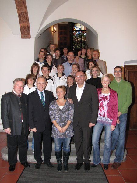„Unser TV ist ganz große klasse“, brachte Oberbürgermeister Dr. Ivo Holzinger es bei einem Empfang für die Erfolgsturner auf den Punkt, dass der hiesige Turnverein von den Deutschen Turngruppenmeisterschaften in Augsburg jüngst zwei beachtenswerte Titel heimbrachte. Die Turngruppenmeisterschaft (TGM) Senioren zeigten ihr Können in den vier Disziplinen Tanzen, Singen, Schwimmen und Werfen und errangen damit die Deutsche Meisterschaft. Die Turnergruppenwettstreitmannschaft (TGW) light Mannschaft mit jüngeren Sportlerinnen und Sportlern setzte sich gegen 57 Konkurrenzmannschaften durch und wurde Bundespokalsieger. Sie überzeugten in den Disziplinen Tanzen, Singen, Schwimmen und Werfen. TVM-Vorsitzender Manfred Schilder freute sich, dass sein Verein wieder „steter Gast im Rathaus“ sei. Die Turner knüpften derzeit wieder an vergangene Zeiten, in denen sie die Meistertitel geradezu abonniert hatten, an. Auch der stellvertretende Abteilungsleiter Max Halder zeigte sich in einem kurzen Grußwort erfreut: „Nach einer Durststrecke sind wir stolz, wieder Erfolge zu präsentieren.“ Aus den Reihen der Sportlerschaft bedankte sich Anna Ermantraut für den Empfang im Rathaus.