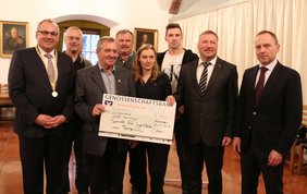 Anlässlich des Besuchs einer Delegation aus der Partnerstadt Tschernihiw wurde vom Reservisten-Musikzug des „Jagdbomber Geschwaders Allgäu“ gemeinsam mit der Katholischen Landjugendbewegung (KLJB) Hawangen eine Spende in Höhe von 1000 Euro übergeben.