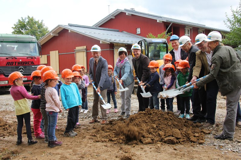 Mit dem traditionellen Spatenstich begannen jetzt die Arbeiten für den Bau der Kinderkrippe Im Mitteresch. Die Krippe mit 24 neuen Plätzen wird an die bestehende Kindertagesstätte angebaut. Bereits im Herbst wird das Richtfest gefeiert.