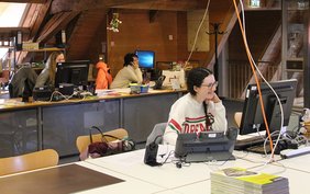 Seit 19. März hat die Stadt Memmingen aufgrund der Corona-Krise ein Infotelefon eingerichtet, das mögliche Fragen der Bürgerinnen und Bürger zur derzeitigen Situation beantwortet. Örtlich sind die Telefonplätze in der geschlossenen Stadtbibliothek eingerichtet worden. Besetzt wurden sie mit Angestellten der Stadtverwaltung. „Die meisten die hier helfen sind Mitarbeiterinnen aus den städtischen Kitas, aber auch aus dem Personalamt und der Bibliothek“, berichtet Gaby Land, die normalerweise auch in einem Kindergarten arbeitet.