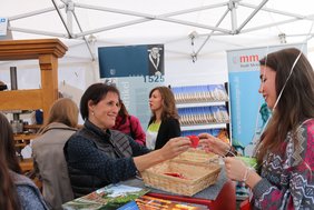 „Grüß Gott, kennen Sie Memmingen?“, hieß es bei Ruth Pfalzer von der Stadtinformation. Bei ihr und Gerd Frasch erfuhren die Passanten jede Menge Wissenswertes rund um die Stadt Memmingen. Über die aktuellen Flugziele, über Parkmöglichkeiten, Geschichte des Flughafens und vieles mehr informierte Sofia Schäffler vom Flughafen Memmingen.