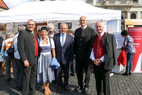 „Schwaben ist ein historischer Fleckerlteppich“, beschrieb Bezirkstagspräsident Jürgen Reichert bei der Begrüßung. „Das Ries ist anders als das Allgäu. Die Schwaben an der Iller sind anders als die Lechschwaben. Aber die Unterschiedlichkeit ist unsere Stärke.“ Die Buntheit und Vielfalt des Regierungsbezirks wurde beim sehr gut besuchten „Schwäbischen Markt“ auf dem Augsburger Rathausplatz deutlich, auf dem sich der Bezirk Schwaben und die Städte Augsburg, Donauwörth, Kaufbeuren, Kempten, Lindau, Memmingen und Nördlingen an Ständen und mit Bühnenbeiträgen präsentierten.