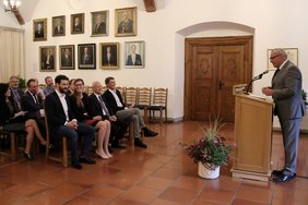 Zusammen mit Dr. Axel Lamprecht, Direktor des SCMT Studienzentrums Memmingen, verlieh Dr. Holzinger den Preis an die beste Absolventin, die ihr Studium in Business Administration in Memmingen in der Regelstudienzeit von drei Jahren Anfang Oktober 2018 abschloss. Ebenfalls anwesend waren Familie und Arbeitskollegen der Absolventin sowie Vertreter des Memminger Stadtrates.