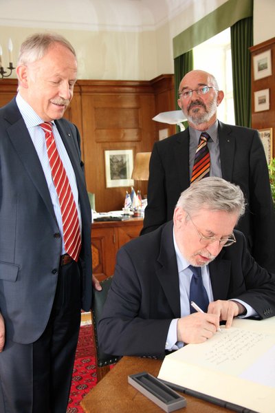 Im Anschluss an den kleinen Empfang trug sich der Hörfunkdirektor des Bayerischen Rundfunks in das Goldene Buch der Stadt Memmingen ein.